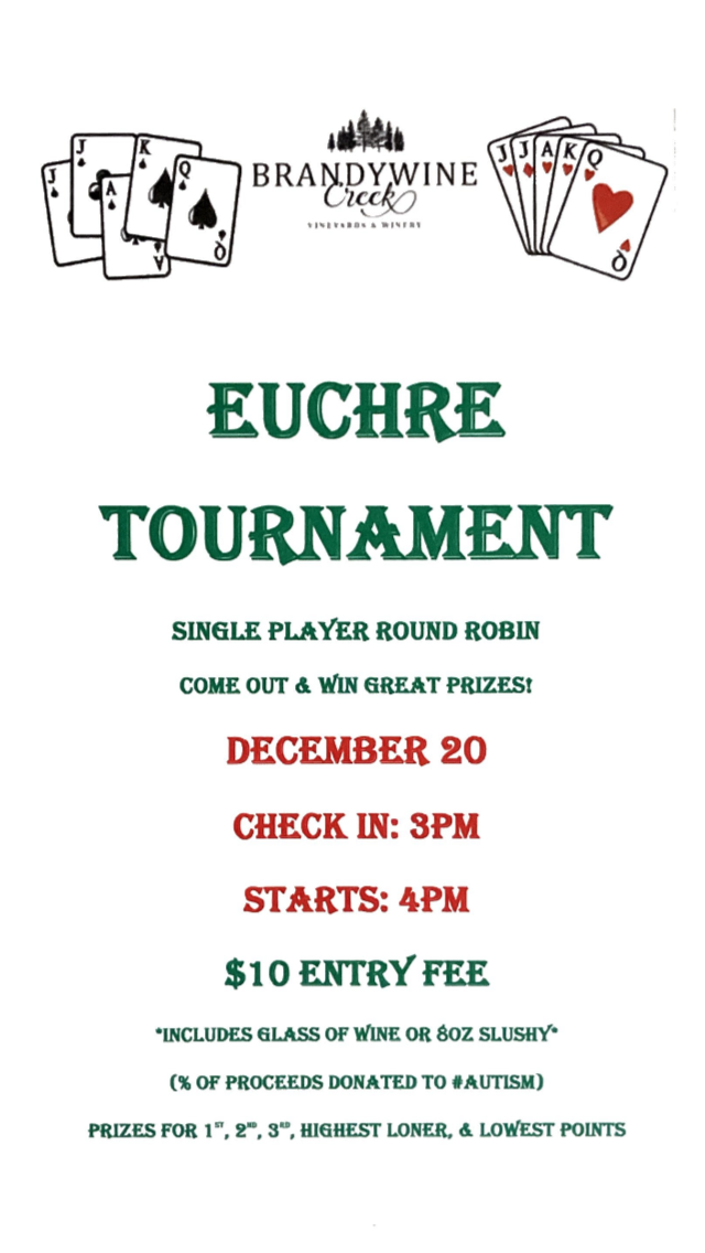 Good at euchre or just in need of a good ol’ fashioned card game to support a good cause? Come on out on December 20th for a euchre tournament where a percentage of the proceeds go towards autism awareness!