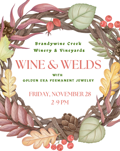 Join us in the tasting room from 2-9pm on November 28th to shop from Golden Era Permanent Jewelry!